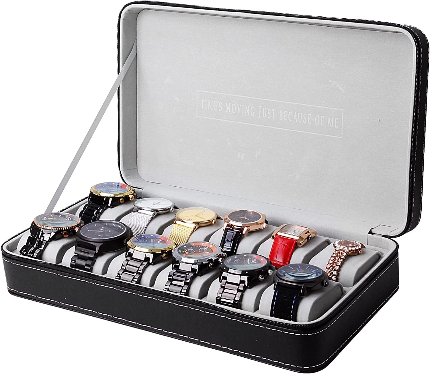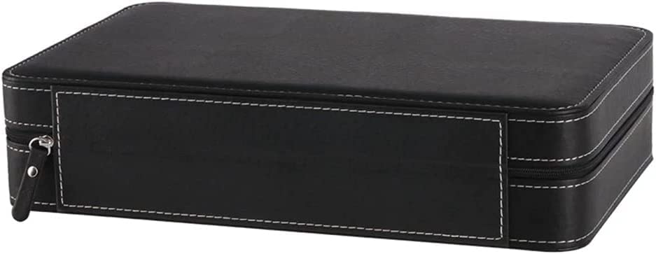 KriShyam® 12-Slot Watch Box,Watch Cases for Men,Watch Holder with Removable Watch Pillow,Portable Zip Watch Travel Case,Black Synthetic Leather,Flannel Grey Lining