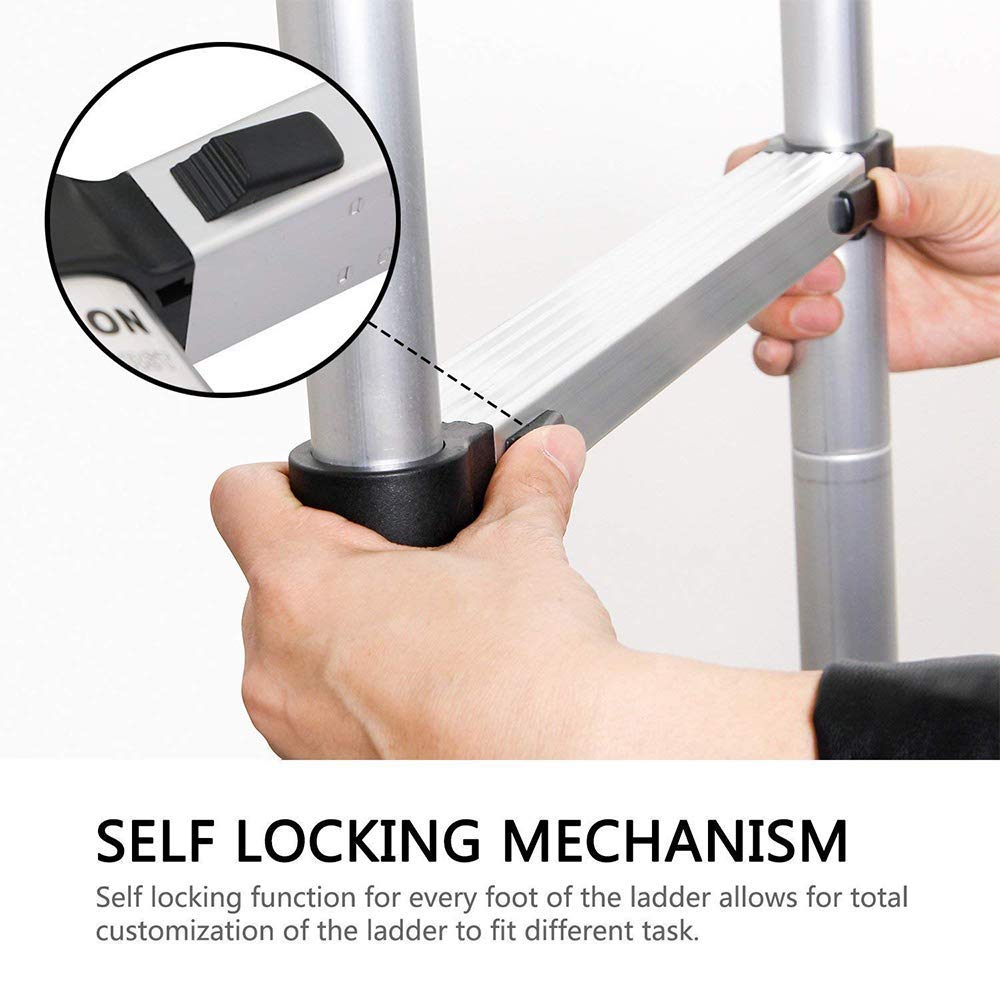 Partial Open: For your safety, highly recommended to keep certain top ladder rungs folded as per actual height demands, and then pull upward the underneath rungs till left rungs of the telescopic ladder extension fully How to Retract the Ladder.