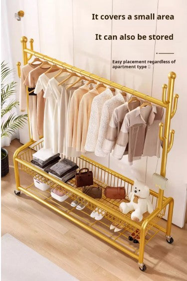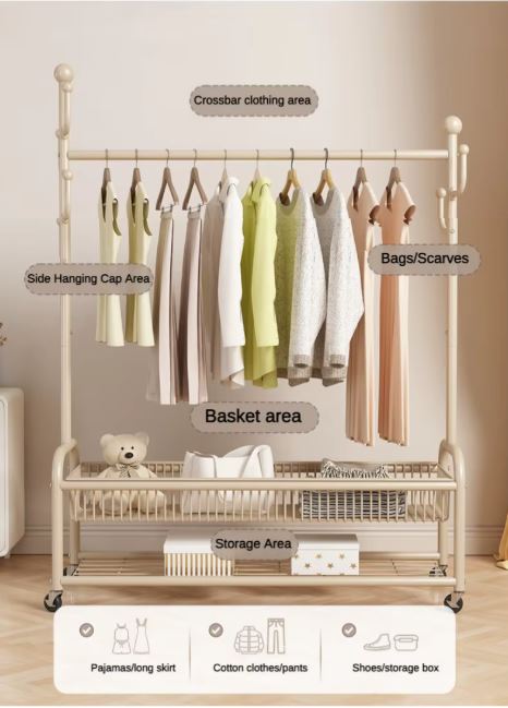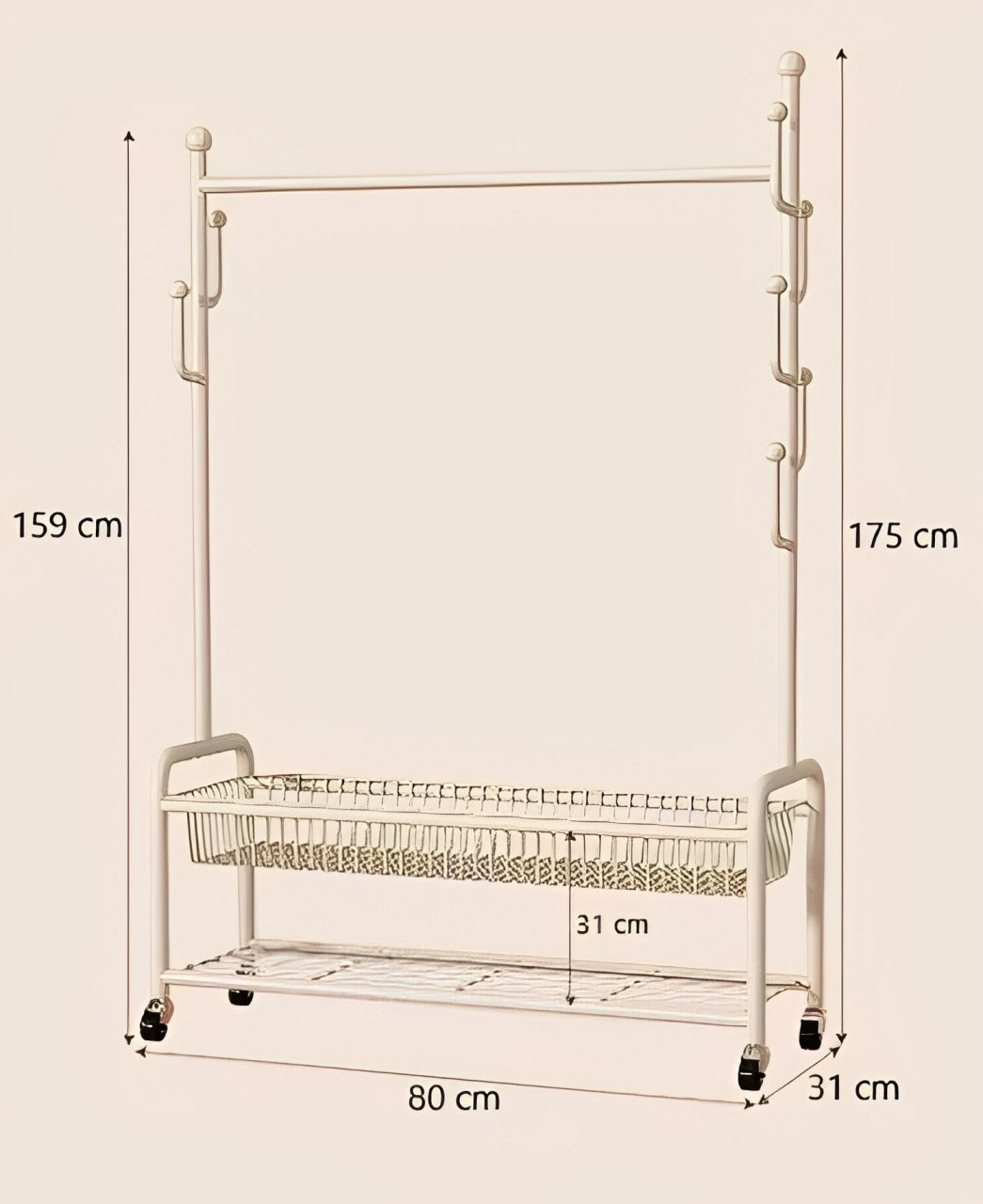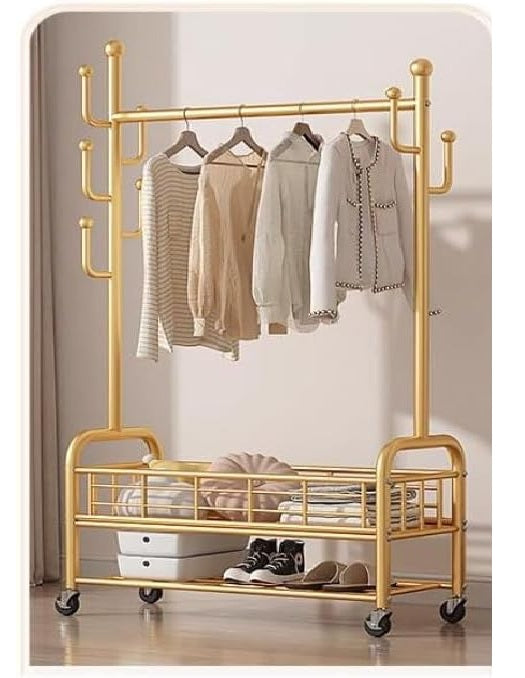 Krishyam® Exquisite Clothes Rail Rack Clothes Rail, 4 in 1 Coat Rack on Brake Wheels, Multifunction Garment Rack with Cactus Hooks and Double Tier Storage Shelf