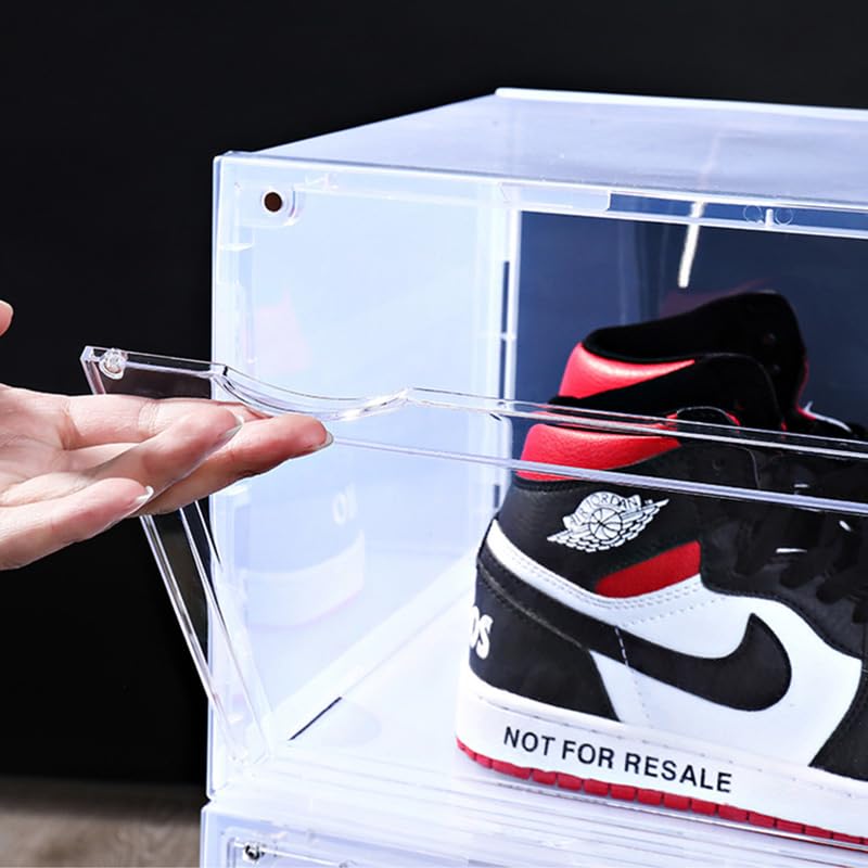 KRISHYAM® Shoe Box Storage Display Box Plastic Foldable Stackable Plastic Shoe Box, As Shoe Box Storage Containers and Shoe Organizer Containers with Lids for Women/Men(WHITE) (Pack of 6)