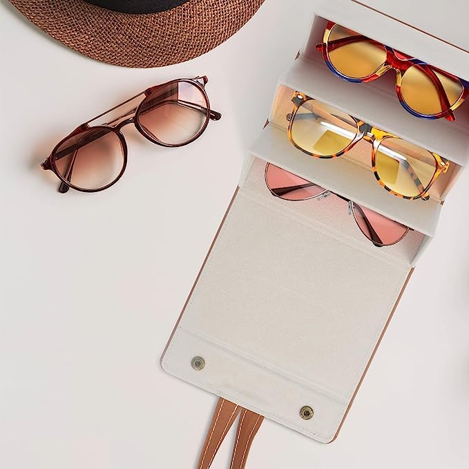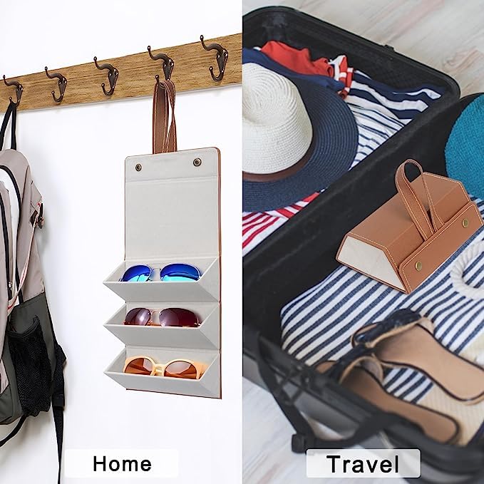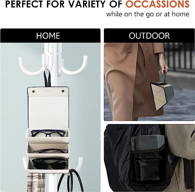 KriShyam® Sunglasses Case, Sunglasses Organizer Case with 3 Slot Compartments Glasses Hanging Organizer Storage Box Travel Portable Sunglasses Storage Case for Men&Women