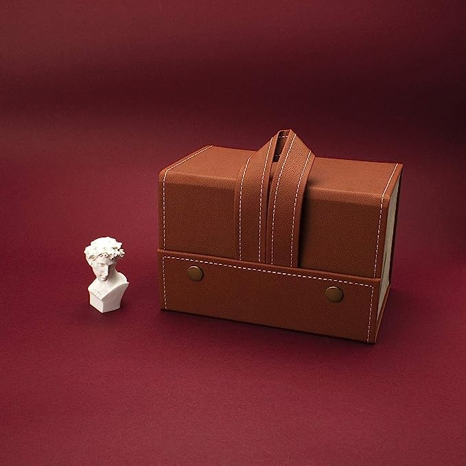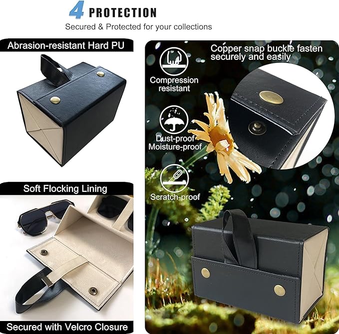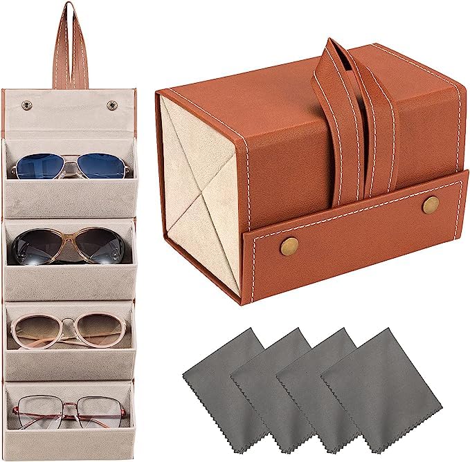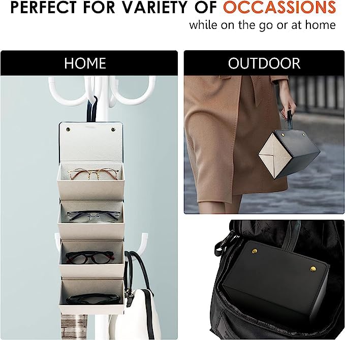 The multi-layer glasses storage box is made of sturdy and durable PU leather,which is not too fragile and not bulky