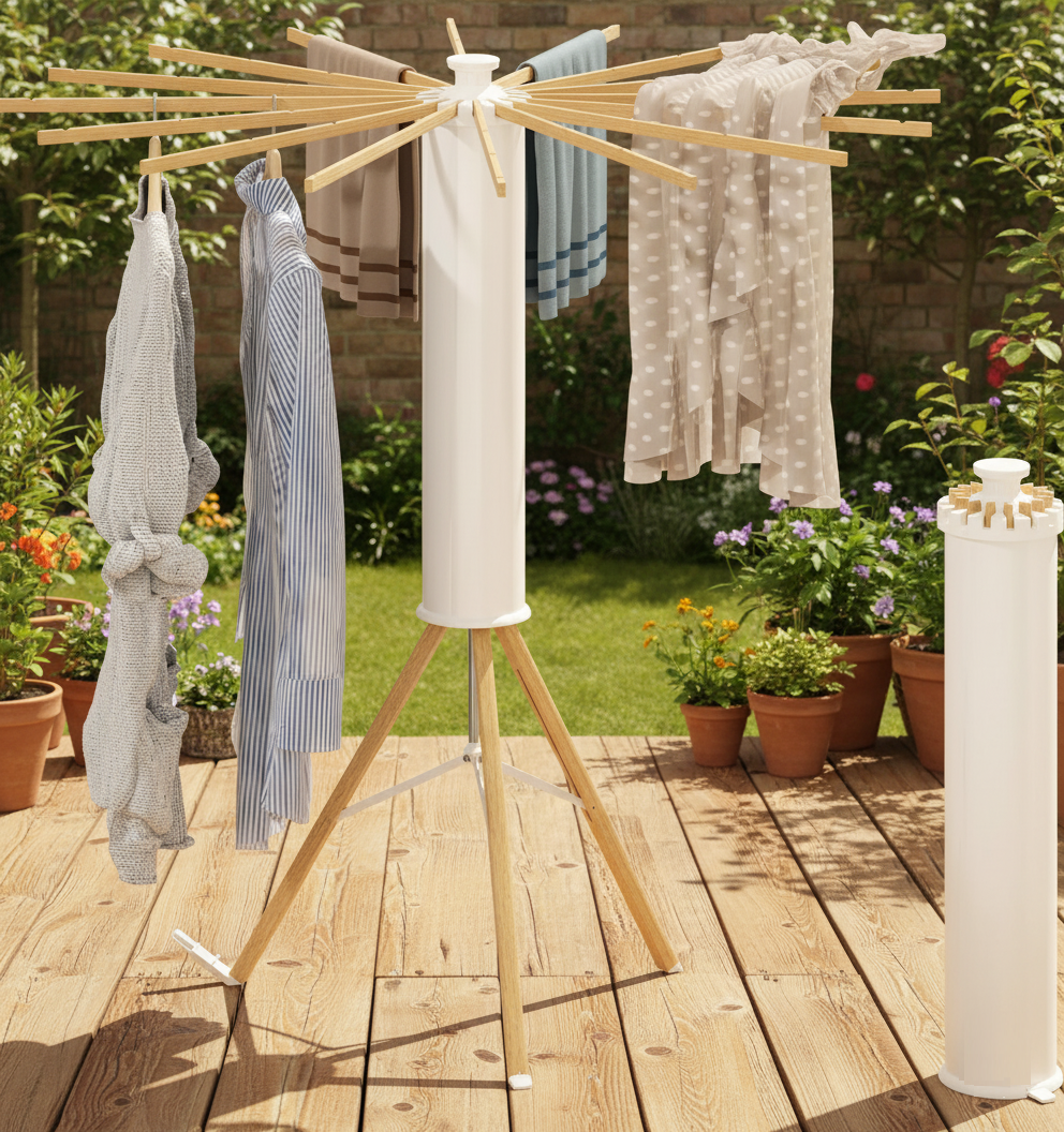 🧺 Innovative & Space-Saving Design: Unlike clunky traditional racks, this airer features a central column with 16...